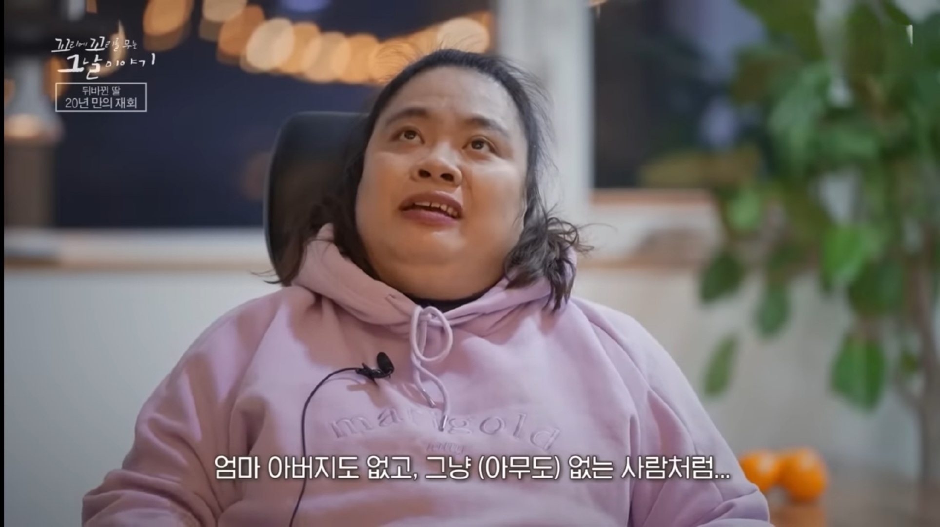 처음 만나자마자 이런 얘기를 하면 향미가 충격을 받을 거 같아서 그날은 말을 못 했다고 합니다. 혹시 가족들이랑은 연락하냐고 물었더니 가족과의 마지막 기억은 8살 때라고 했다고 합니다.