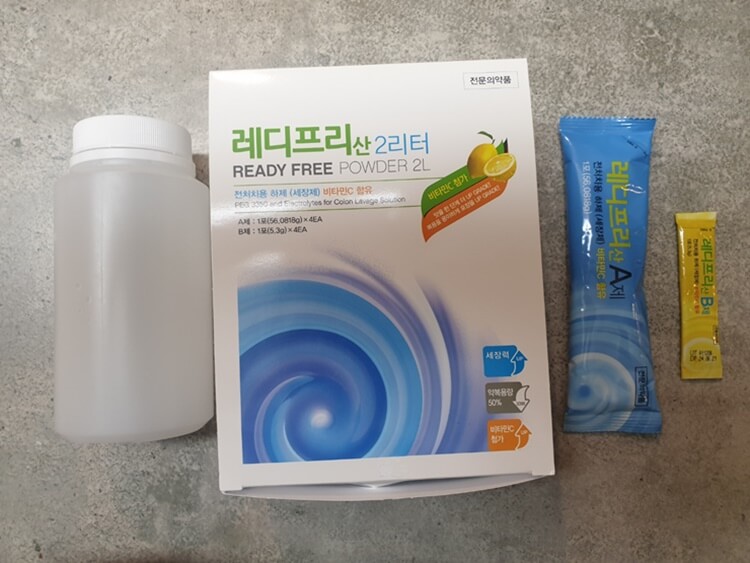 대장내시경을 예약하였다면 보통 검사 일주쯤 전에 '○○○○산'이라는 약을 용기와 함께 보내줍니다.