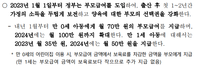 최고 100만 원까지 증액한다고는 하지만 출산율 제고라는 목표를 달성하기에는 부족한 금액일 수밖에 없습니다. 양육 주기에 따른 지원금도 중요하지만 일하면서도 자녀를 키울 수 있도록 부모의 양육 부담을 줄일 수 있는 정책이 확대되어야 할 것입니다.