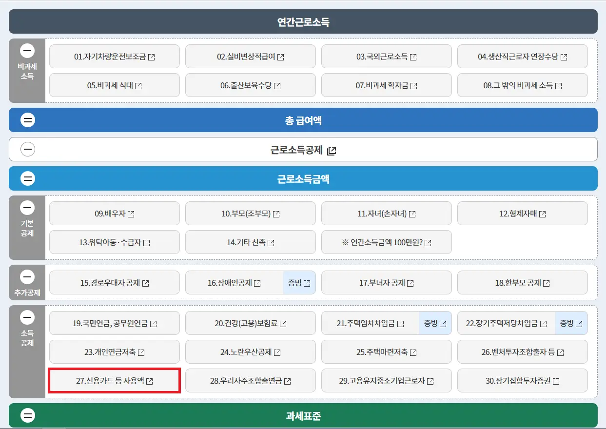 35번 단계에서 빼주는 방식을 세액공제라고 하고 27번 단계에서 빼주는 방식을 소득공제라고 합니다.