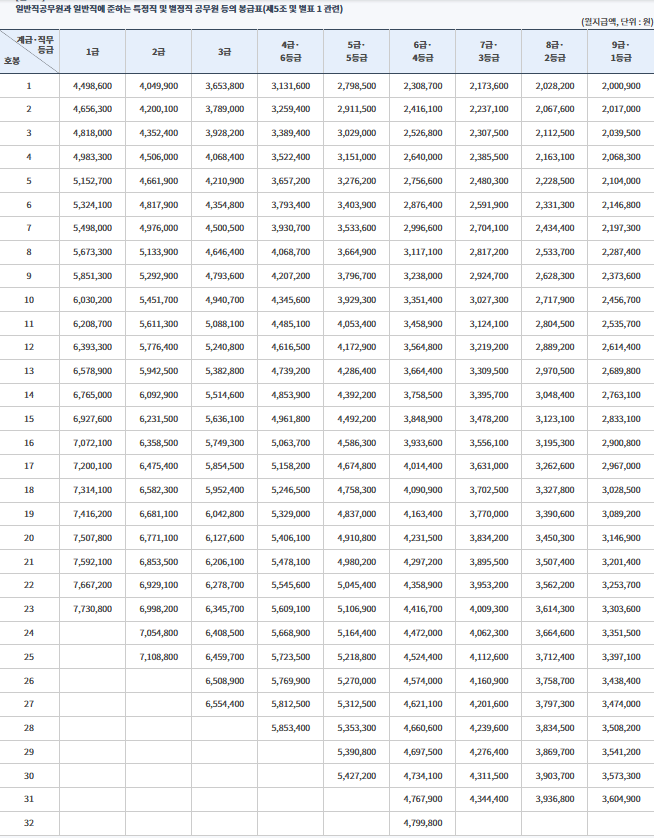 2. 2025년 공무원 봉급표(일반직)